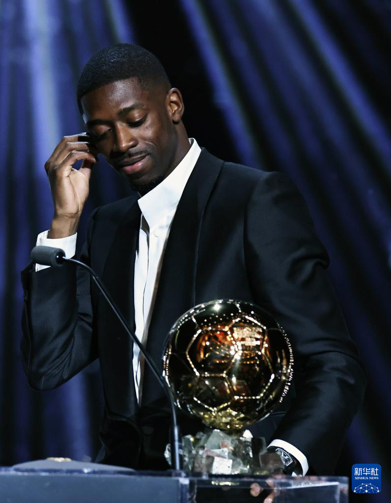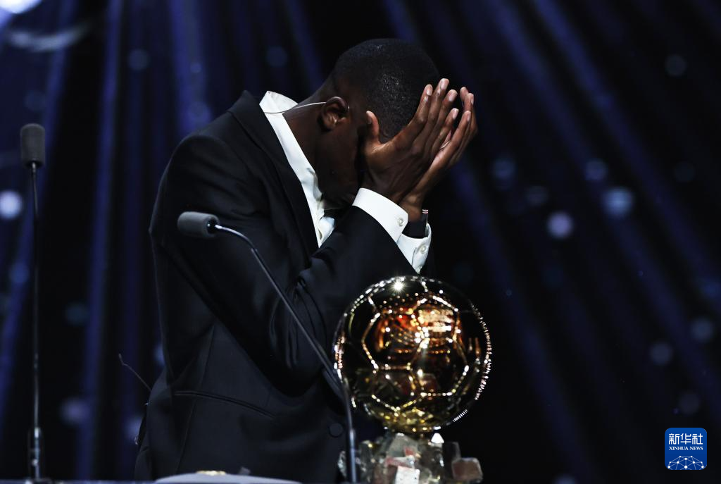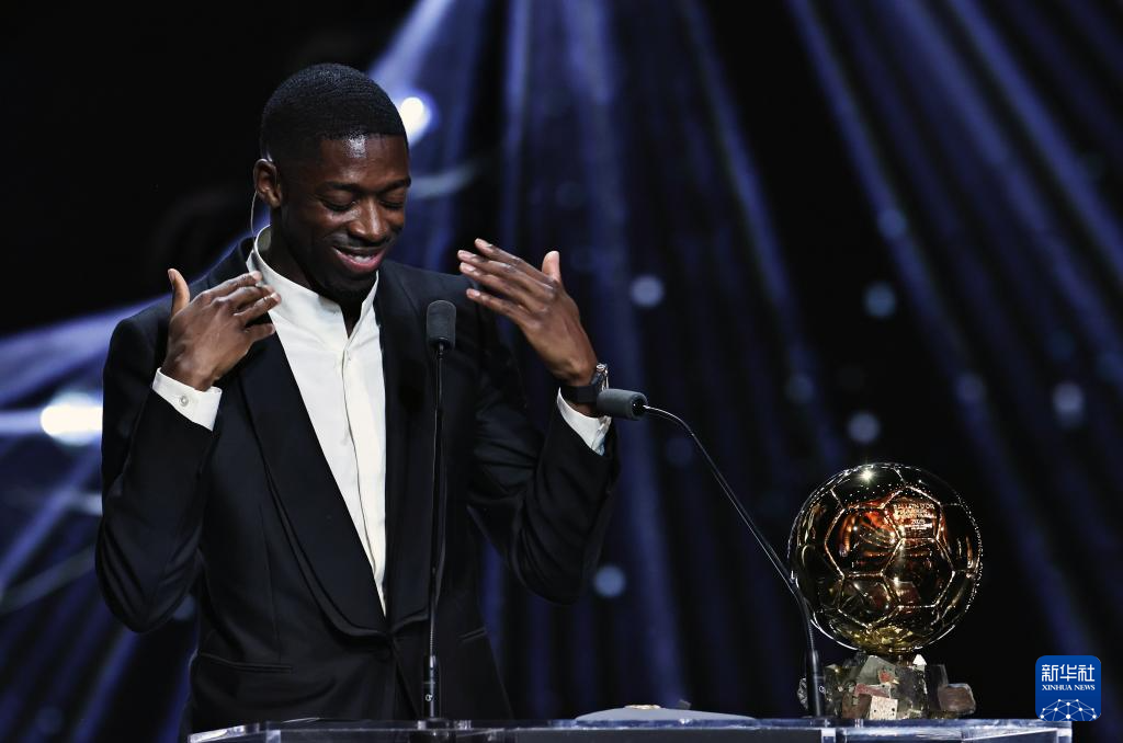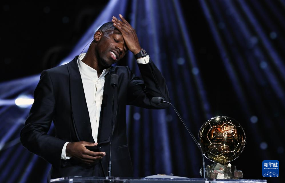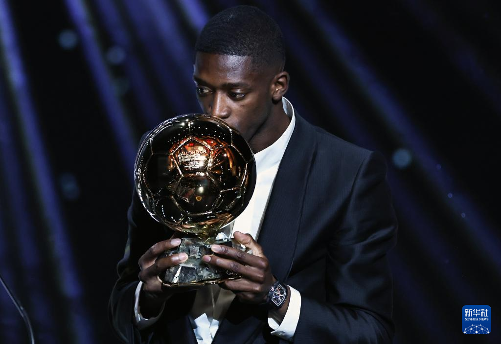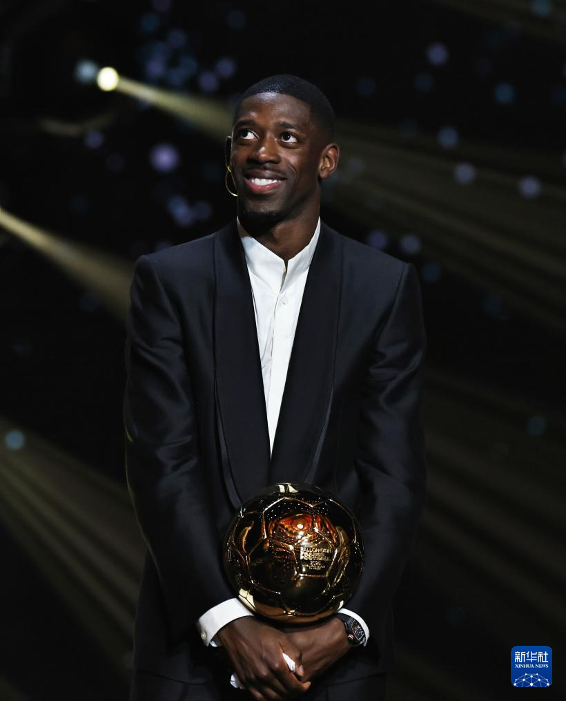 9月22日,巴黎圣日耳曼隊法國球員登貝萊在頒獎儀式上。他獲頒男足金球獎。