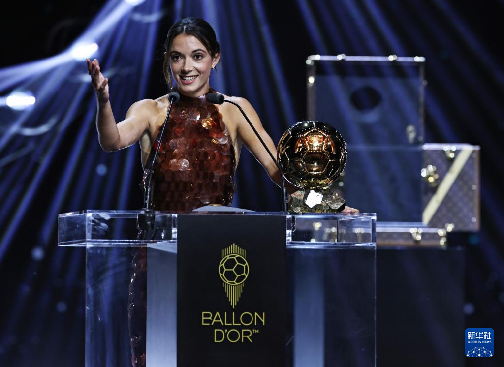 9月22日,巴塞羅那隊西班牙球員邦馬蒂在頒獎儀式上。她獲頒女足金球獎,這是她連續第三年獲得該獎項。
