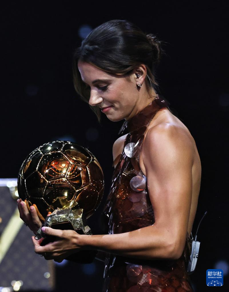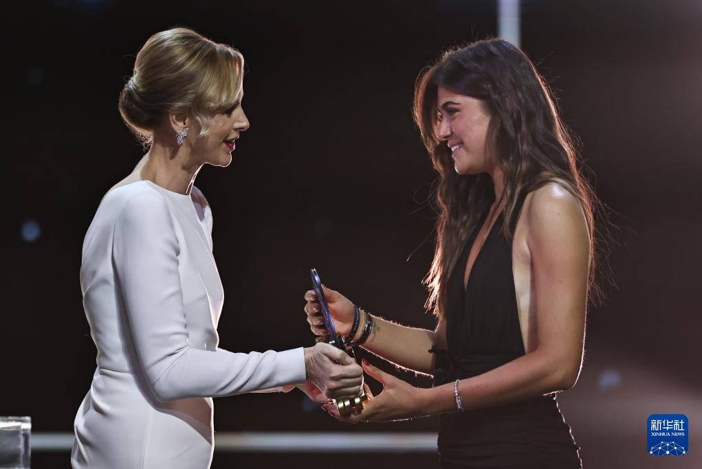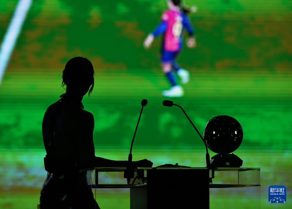 9月22日,巴塞羅那隊西班牙球員邦馬蒂在頒獎儀式上手捧獎杯。她獲頒女足金球獎,這是她連續第三年獲得該獎項。