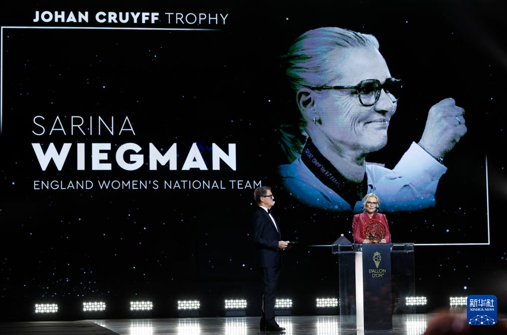 9月22日,英格蘭女足主教練威格曼(右)在頒獎儀式上。她獲得女足最佳教練獎。