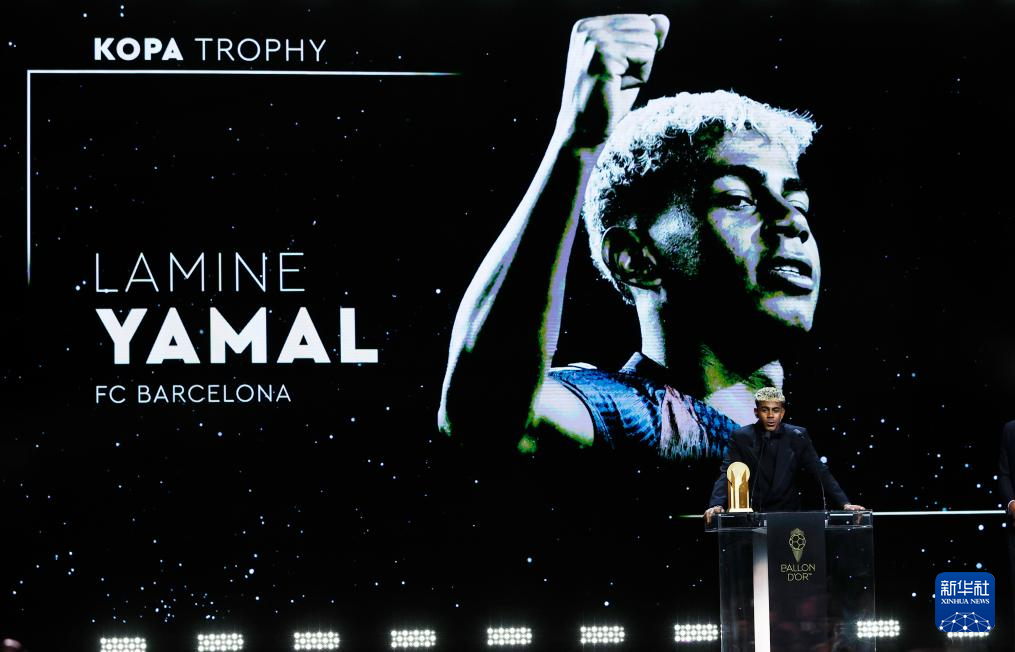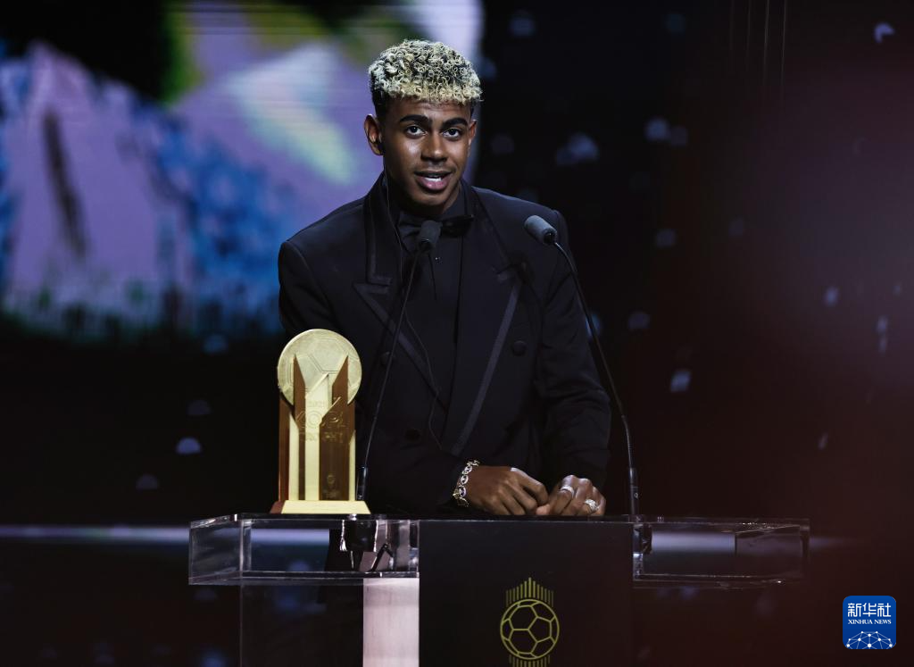 9月22日,西甲巴塞羅那隊球員亞馬爾在頒獎儀式上發表感言。他獲得象征最佳男足年輕球員的“科帕獎”。
