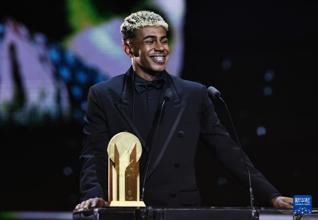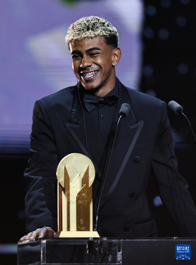 9月22日,西甲巴塞羅那隊球員亞馬爾亮相頒獎典禮紅地毯。他獲得象征最佳男足年輕球員的“科帕獎”。
