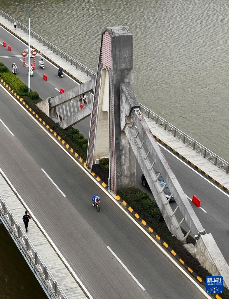 9月23日,參賽選手在比賽中騎行(無人機照片)。