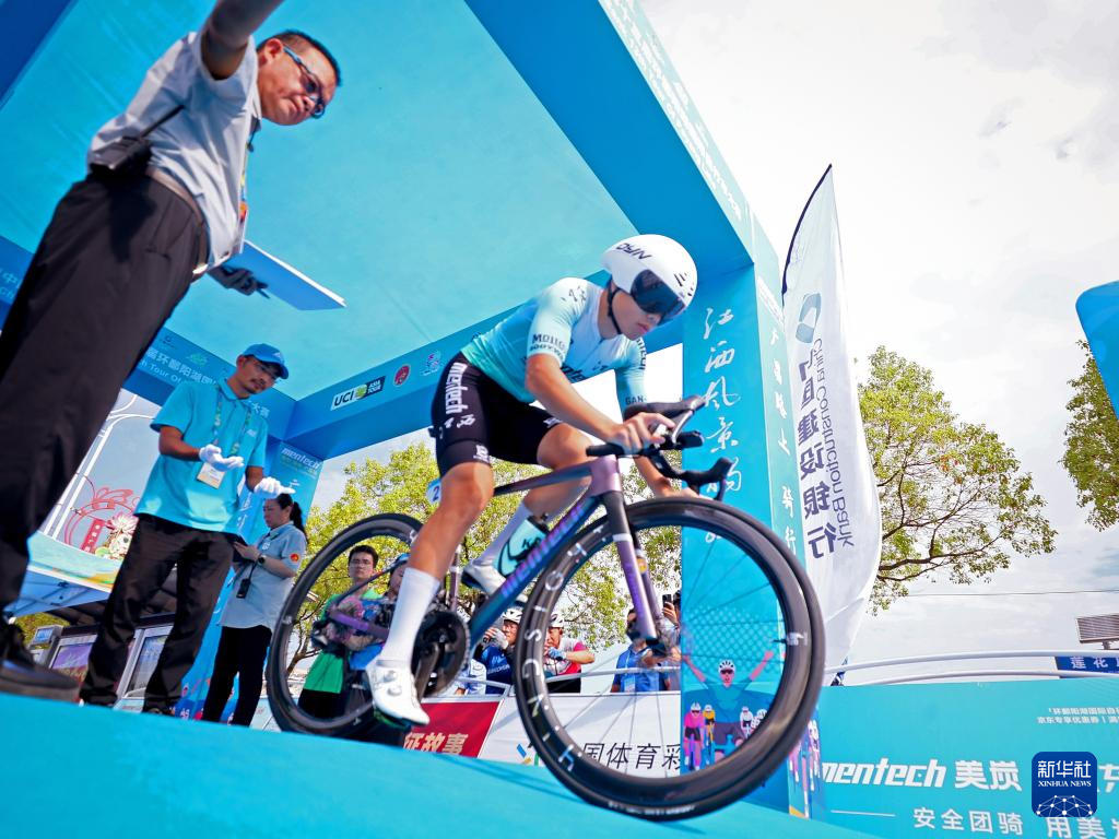 9月23日,中國江西美炭車隊車手鄧皓夫在比賽中出發。