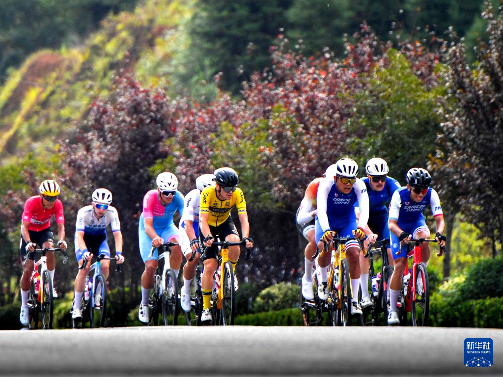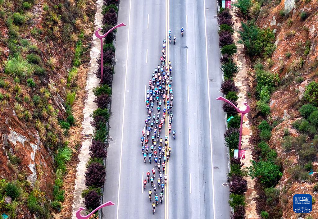 9月22日,參賽選手在比賽中騎行(無人機照片)。