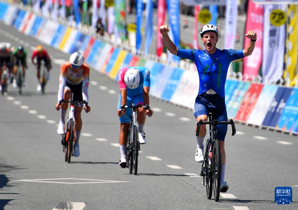 9月22日,澳大利亞凱旋X巴迪瑞車隊車手伊瑟(右一)率先沖過終點,獲得賽段冠軍。