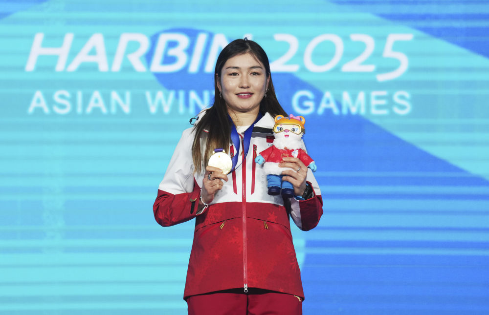2月9日,巴亞尼·加林在第九屆亞冬會頒獎儀式上。新華社記者 王松 攝
