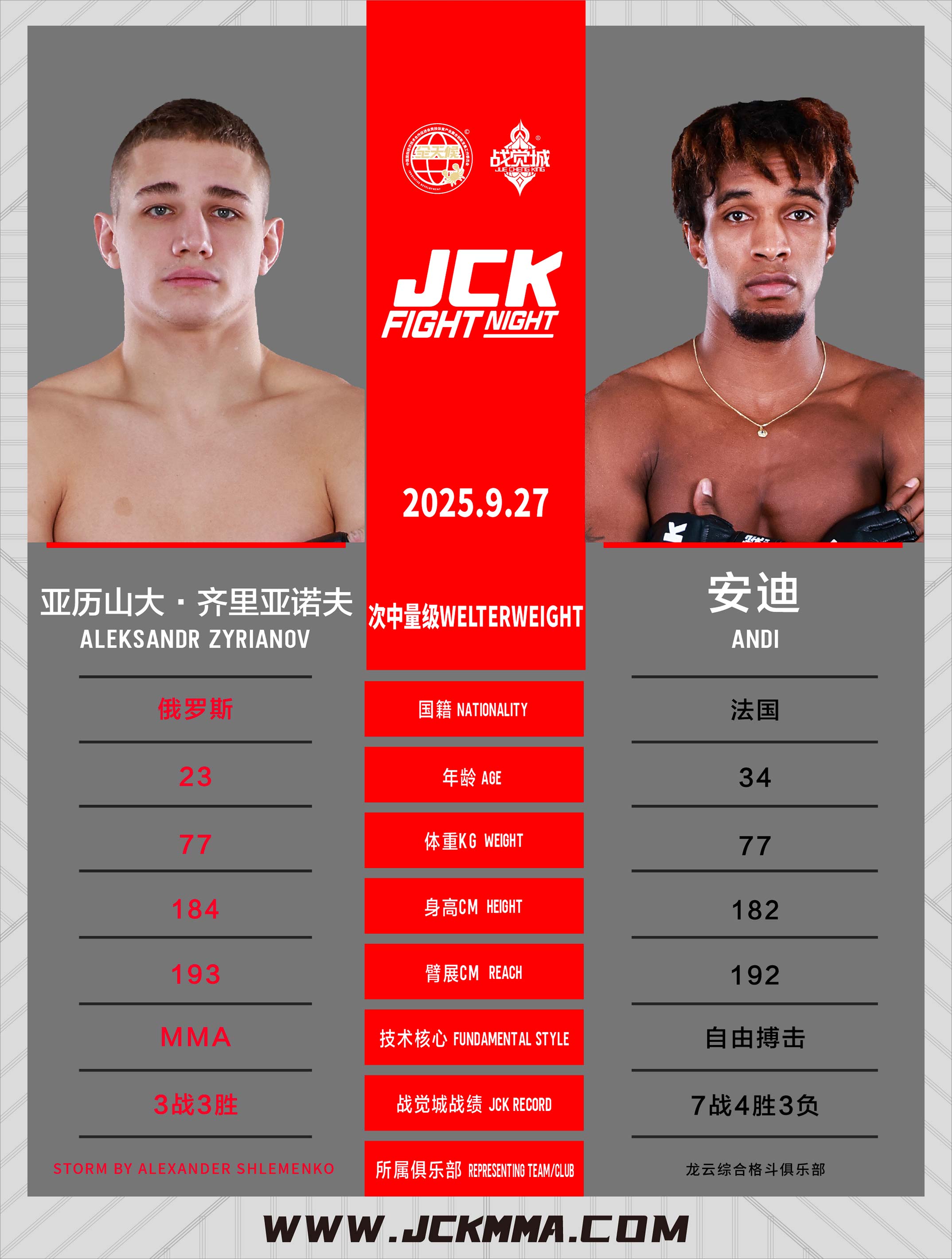 安迪,JCK戰覺城次中量級官方排名第八,目前在JCK戰覺城7戰4勝。