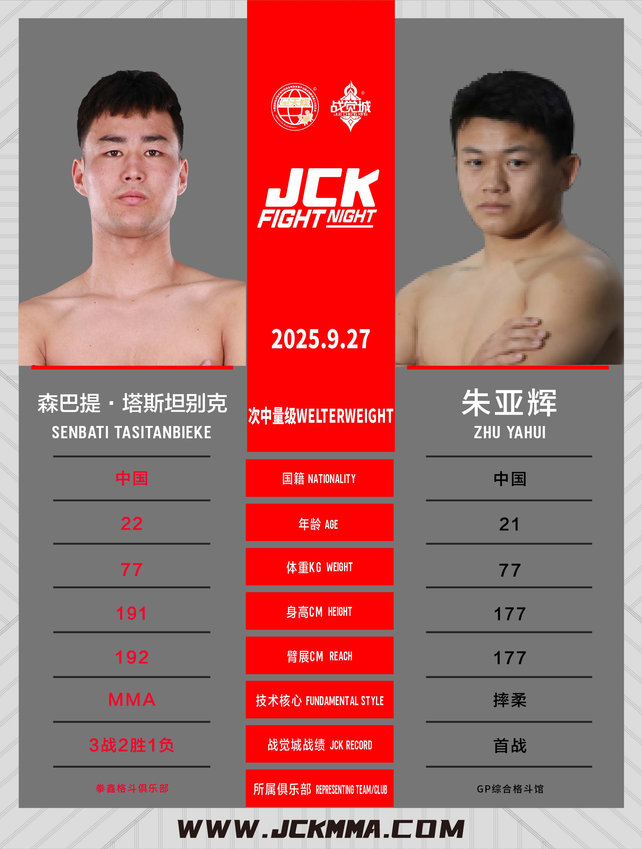 森巴提·塔斯坦別克,在JCK戰覺城3戰2勝,曾2分57秒KO周年樂、1分45秒TKO韓忠義。