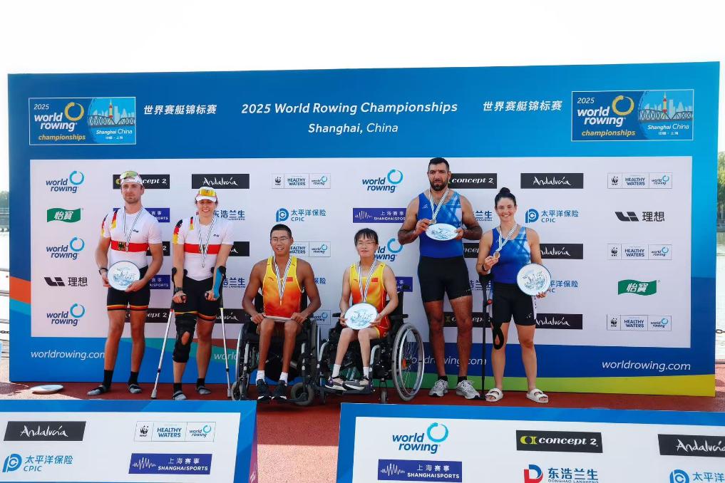第三枚金牌則在第三個比賽日誕生,在殘疾人項目上,中國隊蔣繼劍/劉爽在PR2級混合雙人雙槳決賽中奪冠。這對巴黎殘奧會亞軍組合在比賽中發揮出色,以明顯優勢奪冠?!鞍雁y牌變成金牌,除了堅持還是堅持?!笔Y繼劍賽后表示。