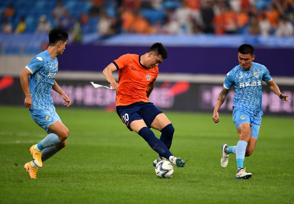 6月21日,青島海牛隊球員馮伯元(中)在足協杯比賽中。新華社記者 李紫恒 攝