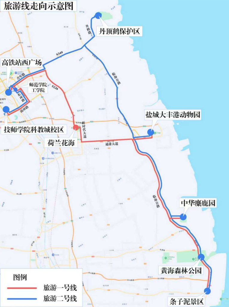 鹽城在國慶期間開通2條景區直通車免費旅游專線。
