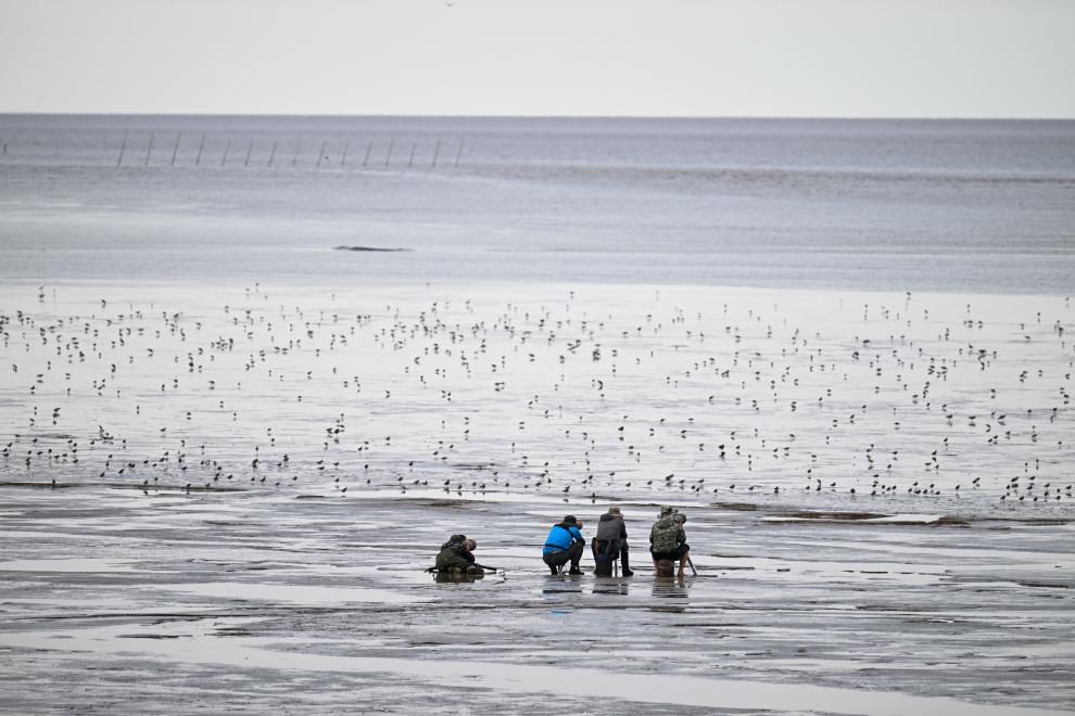 8月25日,攝影愛好者在東臺條子泥濕地拍鳥。新華社記者 季春鵬 攝