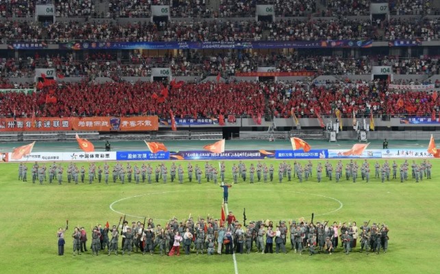 “若要盼得紅軍來,嶺上開遍映山紅”,吉安主場響起《映山紅》的熟悉旋律,喚醒“刻在骨子里的紅色基因”;九江主場的《為了誰》情景演出,將賽場內外思緒集體拉回到九八抗洪時,軍民攜手守堤的感人場景。