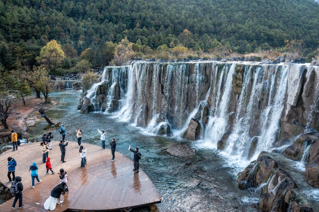 10月6日人們在麗江市玉龍雪山景區藍月谷徒步新華社記者胡超攝