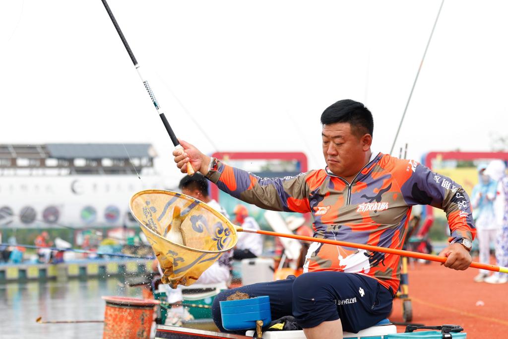 釣魚愛好者在江蘇省宿遷市泗洪洪澤湖國際大圓塘垂釣中心參加垂釣大賽。新華社發(許昌亮攝)