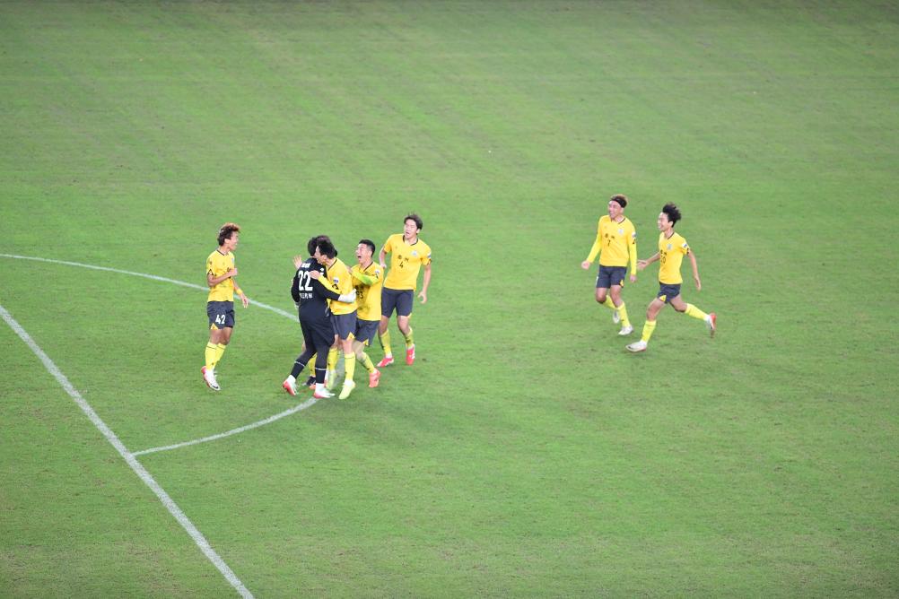 10月18日,泰州隊球員在和南京隊的點球大戰獲勝后慶祝。新華社發(劉臻睿 攝)