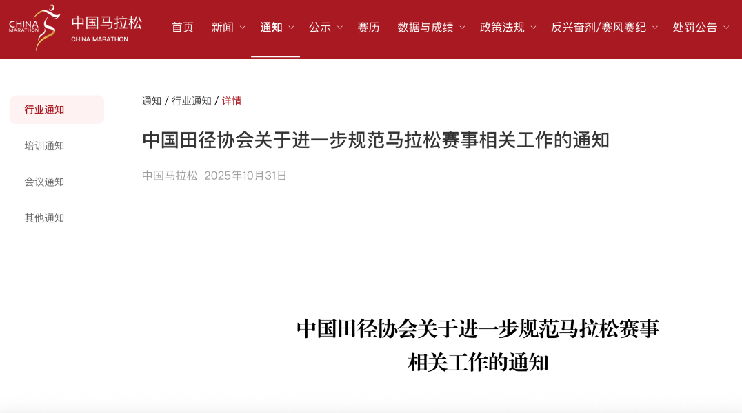 新華網北京10月31日電 為進一步規范馬拉松賽事相關工作,10月31日,中國田徑協會發布《關于進一步規范馬拉松賽事相關工作的通知》(以下簡稱《通知》),再次明確了賽事組織管理的相關事項。此外,協會還于30日公布了2025年11月至12月全國各省區市馬拉松賽事舉辦目錄。