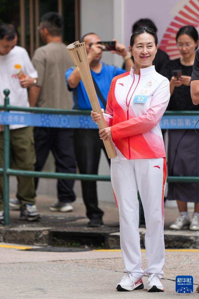 11月2日,火炬手何超瓊在火炬傳遞活動中。