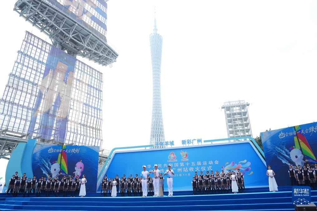 這是11月2日拍攝的第十五屆全運會火炬傳遞廣州站收火儀式現場。