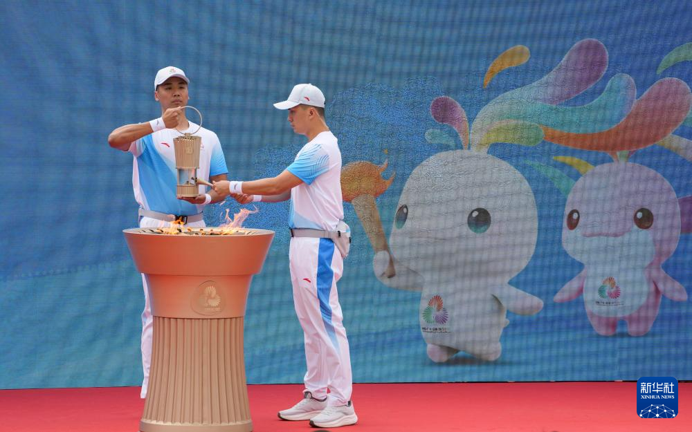 11月2日,火炬手霍震霆(左)、李振豪在傳遞活動中交接圣火。