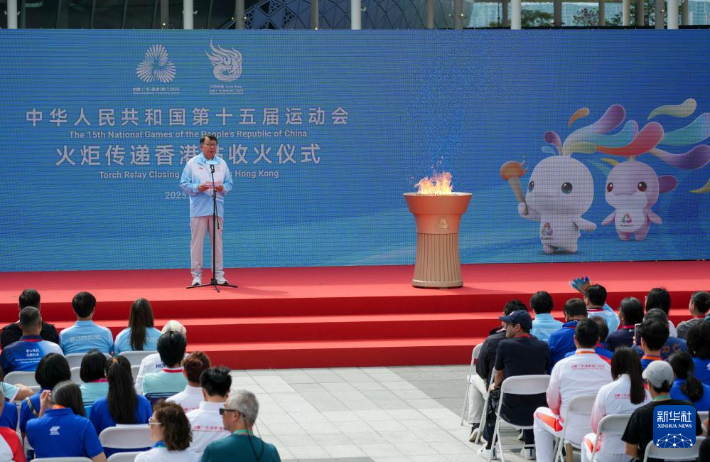 11月2日,第十五屆全國運動會組織委員會副主任、香港特別行政區政府政務司司長陳國基在收火儀式上講話。