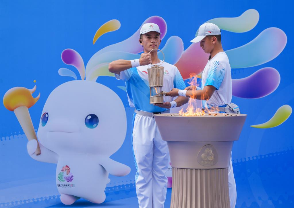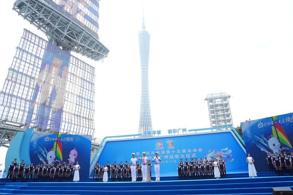↑第十五屆全運會火炬傳遞廣州站收火儀式現場。新華社記者 薛宇舸 攝