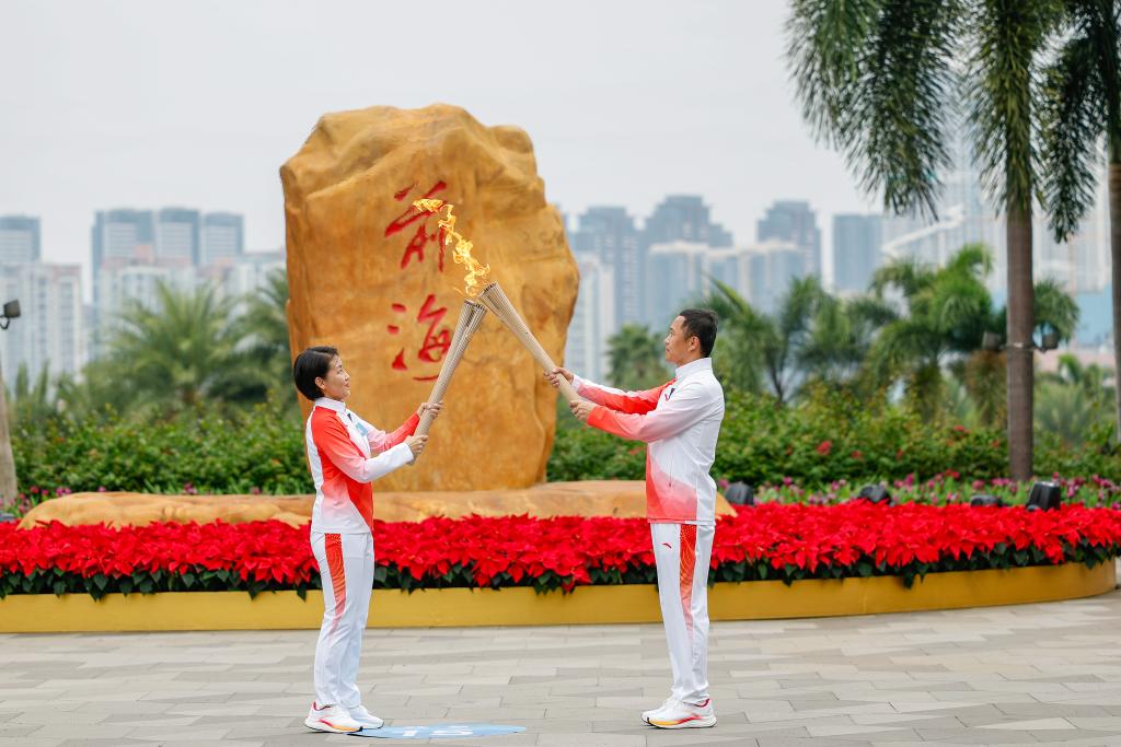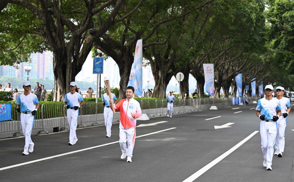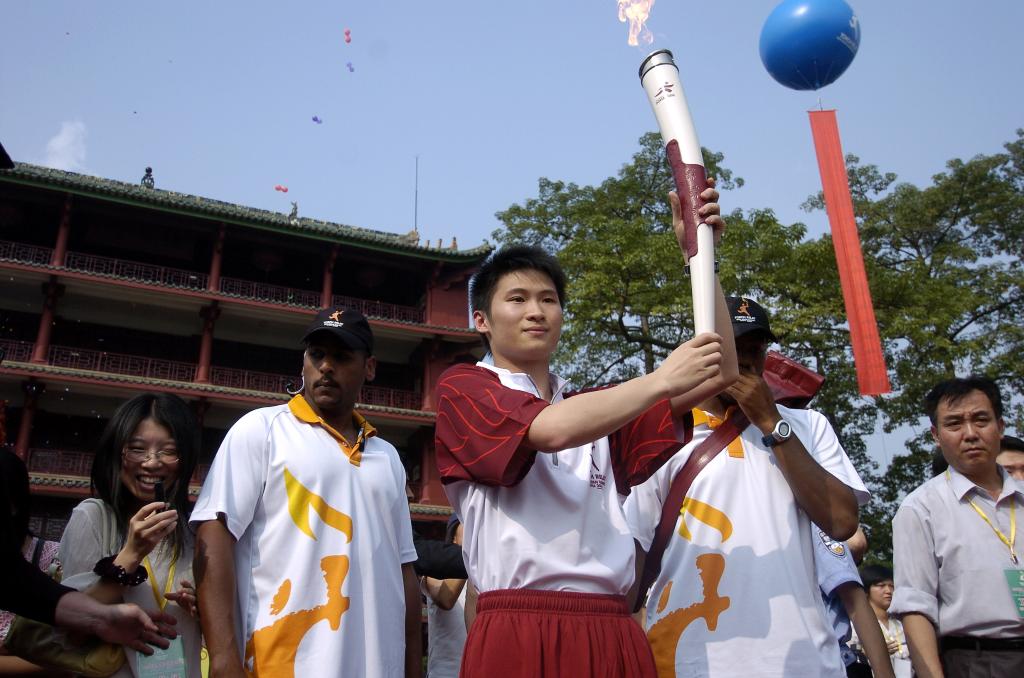 他同樣作為火炬傳遞廣州站第一棒火炬手