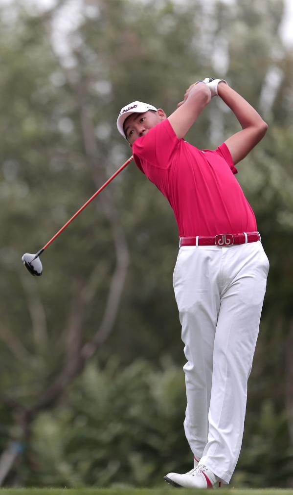 2013年9月9日,香港隊選手黑純一在比賽中。當日,在遼寧省沈陽市進行的第十二屆全運會高爾夫球男子團體比賽中,香港隊最終以851桿的總成績奪得亞軍。新華社記者姚劍鋒攝