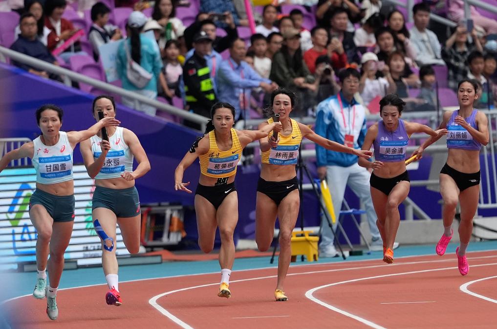 圖為11月15日拍攝的第十五屆全國運動會田徑項目4×100米混合接力預賽。新華社記者 李一博 攝