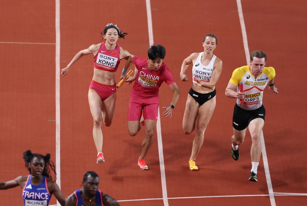 15日晚,在廣東奧體中心舉行的田徑項目首個比賽日中,4×400米混合接力和4×100米混合接力都產生了金牌。但這兩個混合項目在交接棒次序上有所不同,4×400米混合接力是“男女男女”的次序,4×100米混合接力則采用“女女男男”的次序。