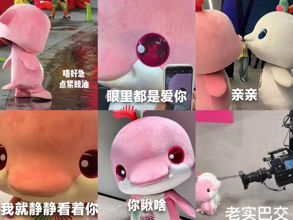吉祥物的旋風腿、起跳轉圈、舞獅擺頭