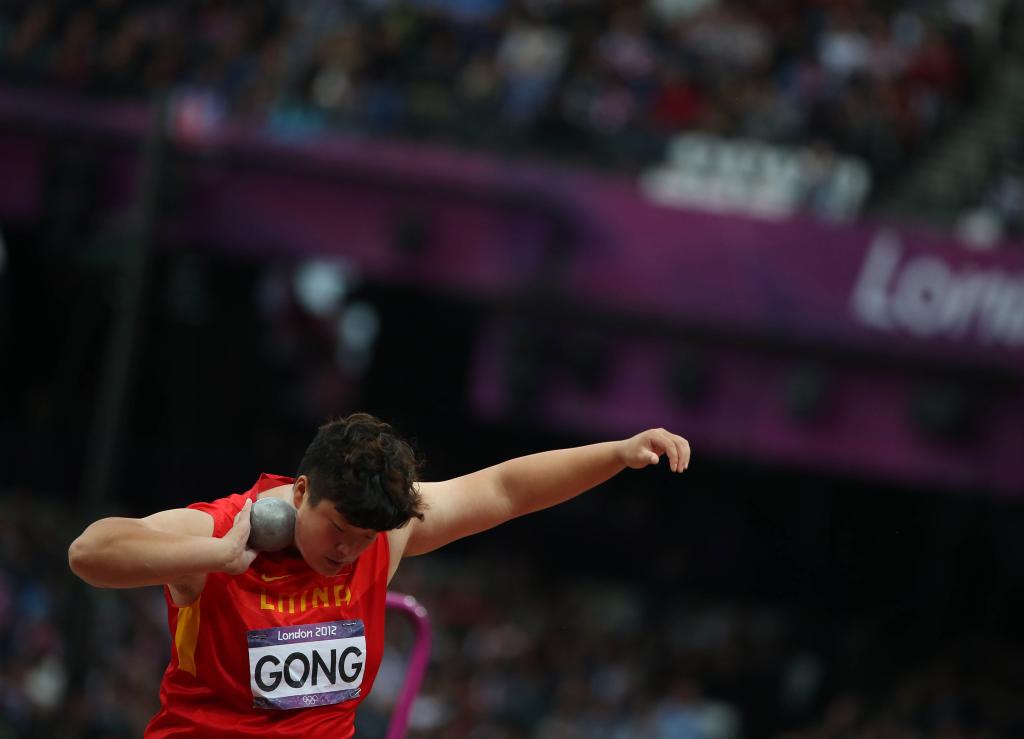 2012年8月6日,鞏立姣在倫敦奧運會田徑女子鉛球決賽中。