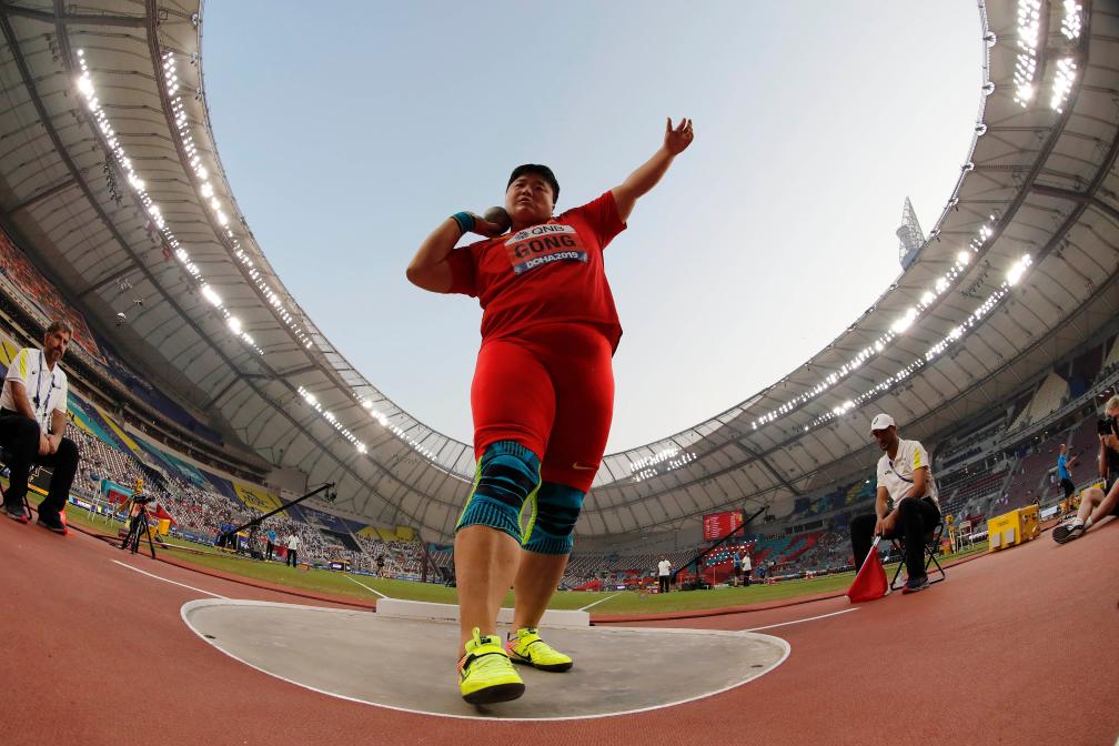 2019年10月2日,鞏立姣在國際田聯世界田徑錦標賽女子鉛球資格賽中。