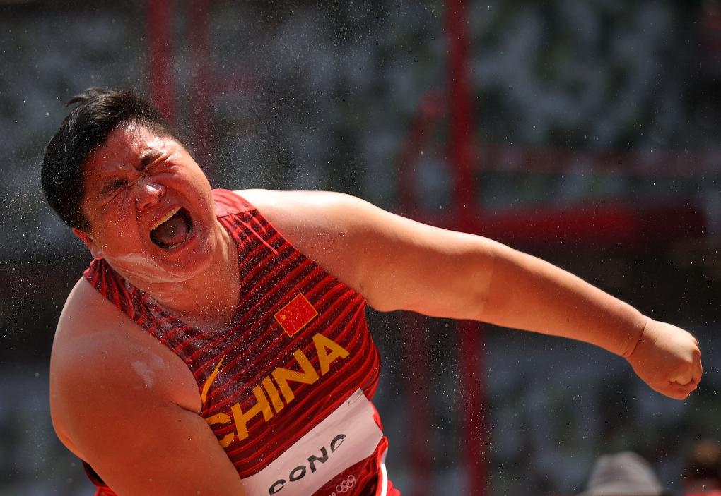 2021年8月1日,鞏立姣在東京奧運會田徑女子鉛球決賽中。