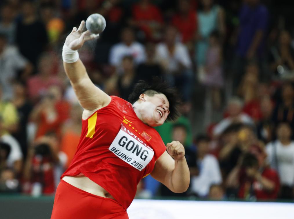 2015年8月22日,鞏立姣在國際田聯田徑世錦賽女子鉛球決賽中。
