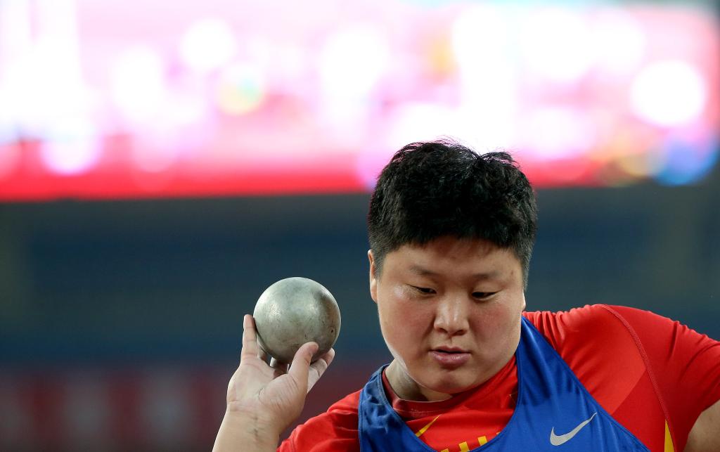 2025年11月16日,河北隊選手鞏立姣在第十五屆全國運動會田徑女子鉛球決賽中。