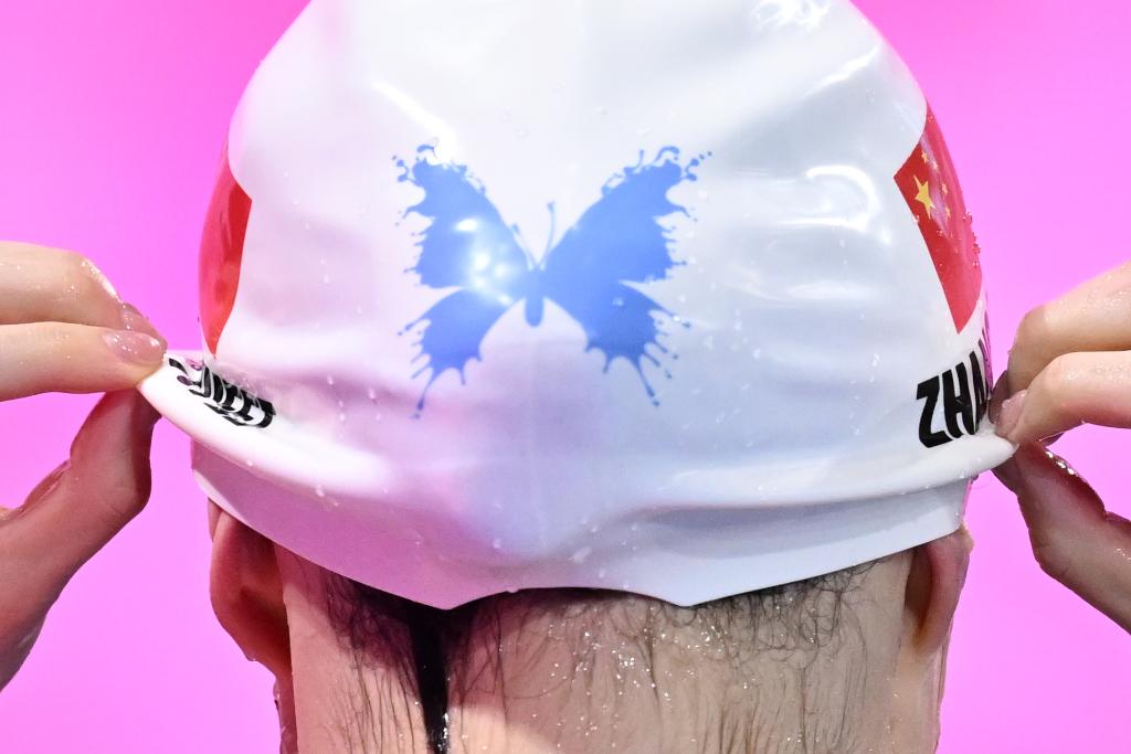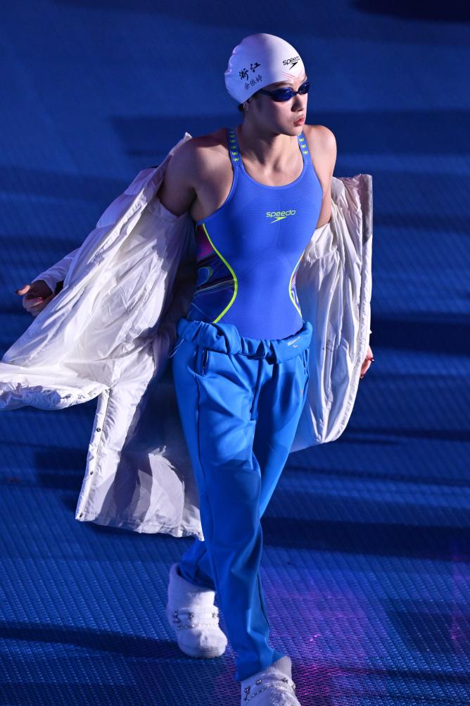 11月15日,浙江隊選手余依婷在女子50米蝶泳半決賽前出場。