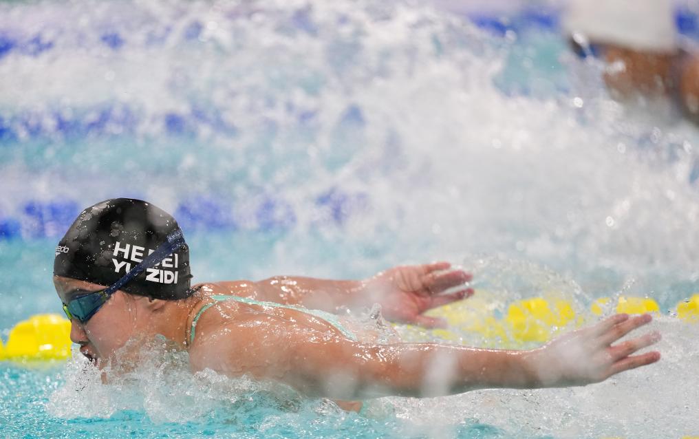 11月11日,江蘇隊選手張雨霏在女子100米蝶泳決賽中。