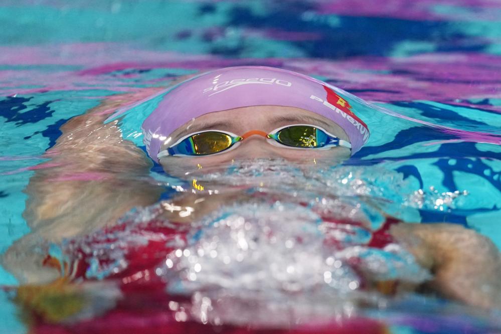 11月15日,湖北隊選手彭旭瑋在女子200米仰泳半決賽中。