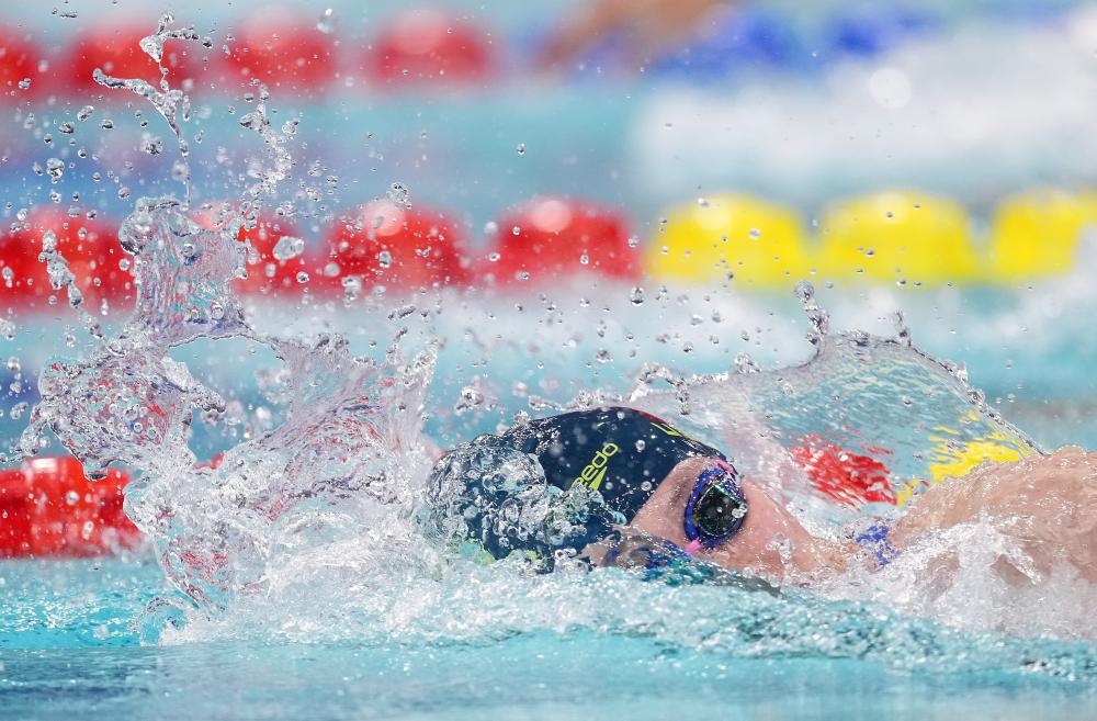 11月12日,河北隊選手李冰潔在女子1500米自由泳決賽中。