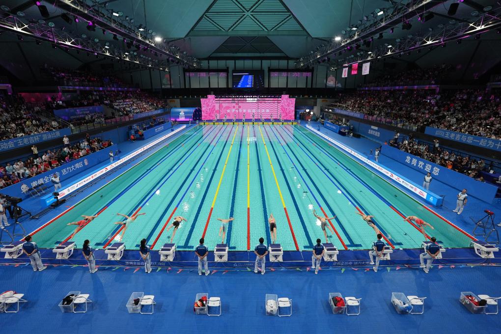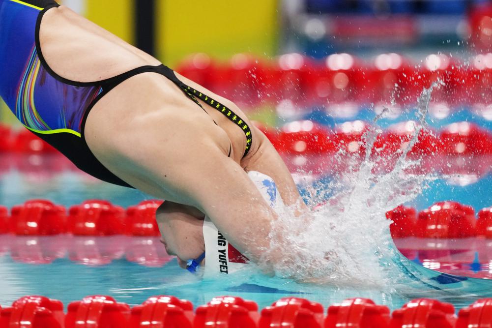 11月16日,江蘇隊選手張雨霏在女子50米自由泳半決賽中入水。