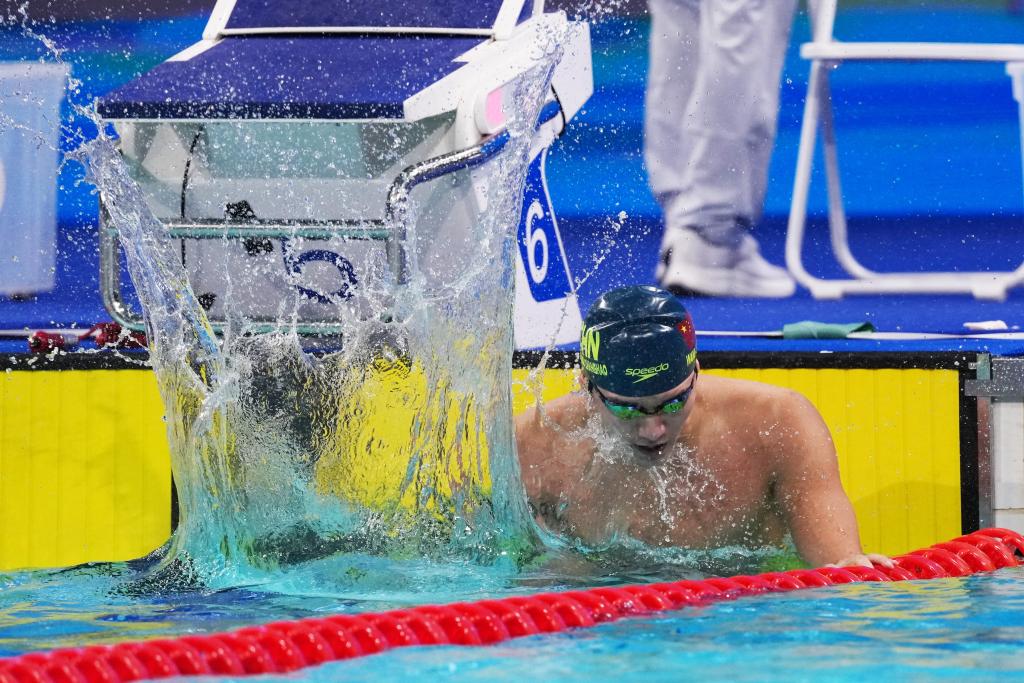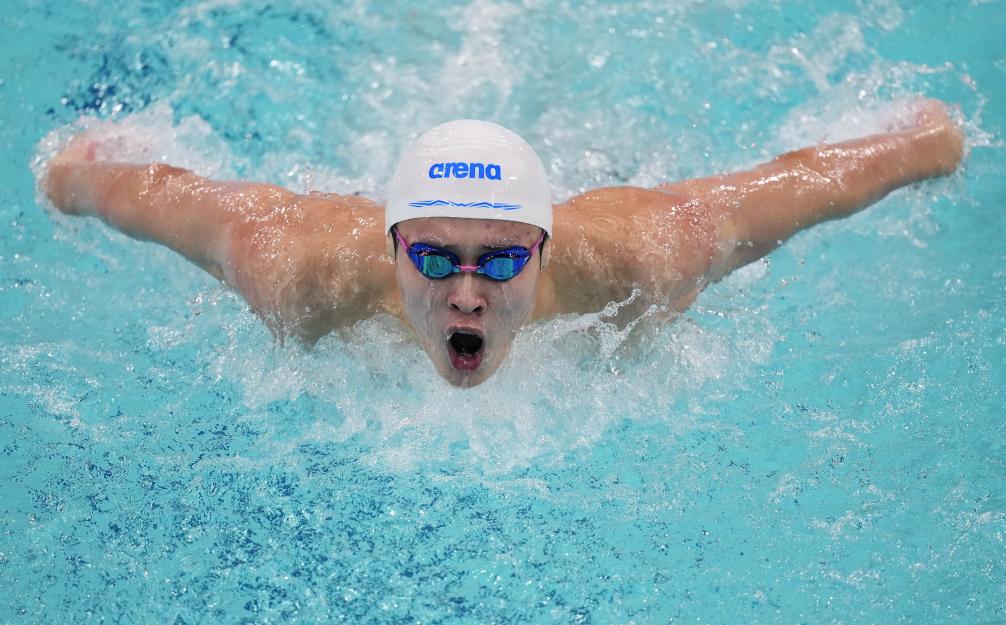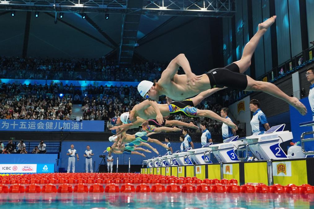 11月11日,浙江隊選手潘展樂在男子200米自由泳半決賽中入水。
