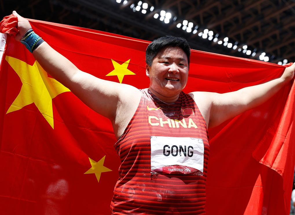 2021年8月1日,在東京奧運會田徑女子鉛球決賽中,中國選手鞏立姣奪得冠軍。新華社記者 王麗莉 攝