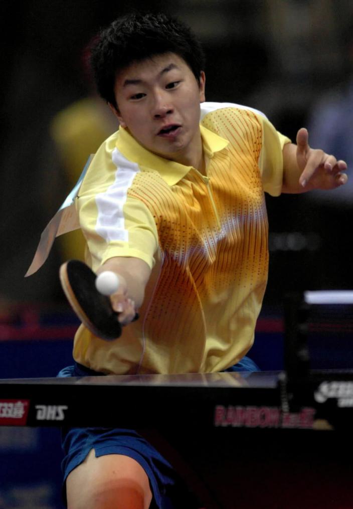 2005年10月18日,北京小將馬龍在十運會乒乓球男子單打決賽中,以4比2的比分力克廣東名將馬琳,奪得銅牌。 新華社發(資料圖片)