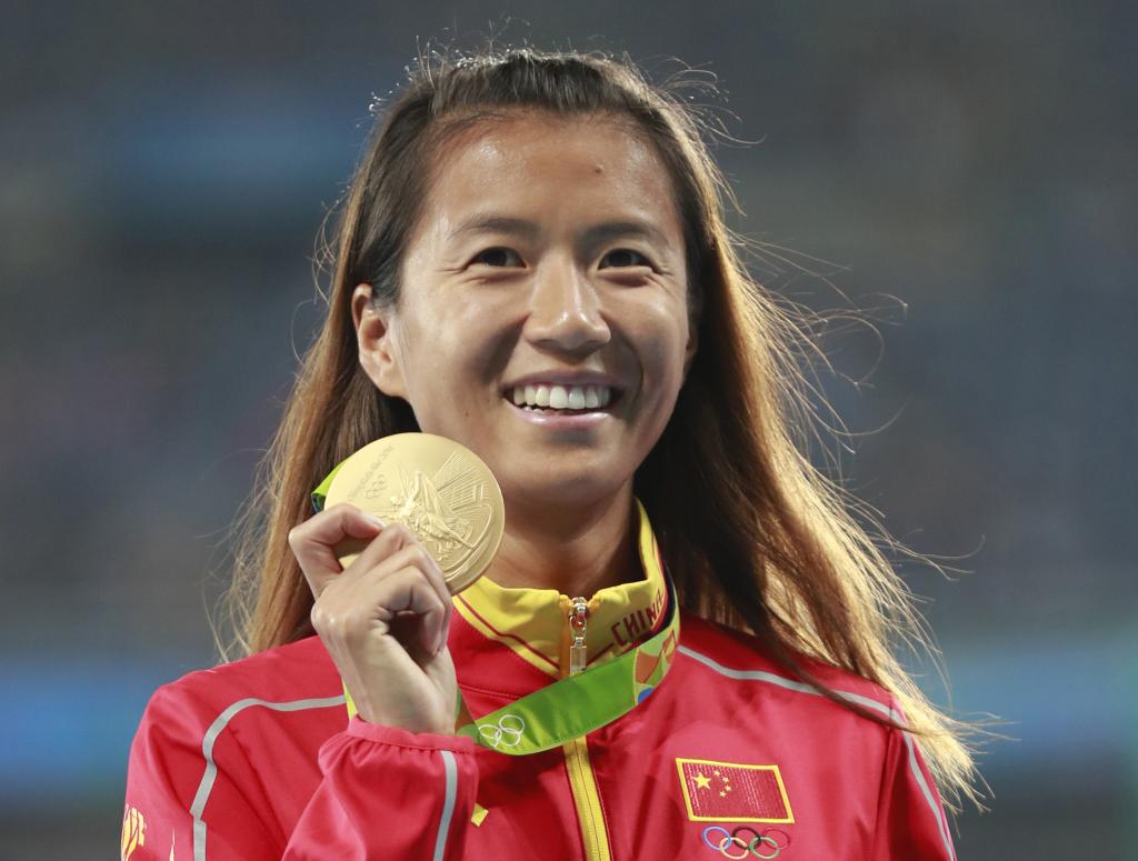 2016年8月19日,里約奧運會田徑女子20公里競走比賽中,中國選手劉虹以1小時28分35秒的成績奪冠。新華社記者 任正來 攝