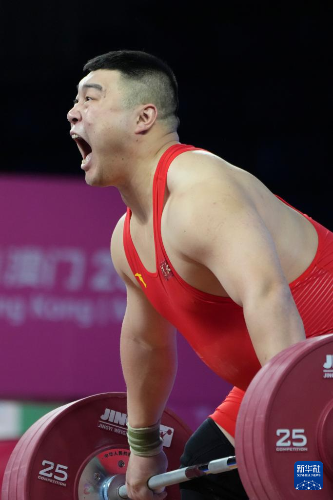 11月20日,河北隊選手張喜亮在抓舉比賽中。最終,他獲得冠軍。