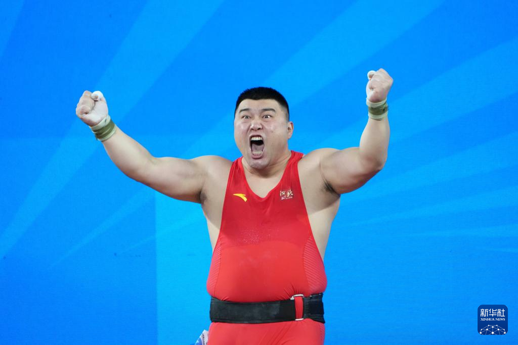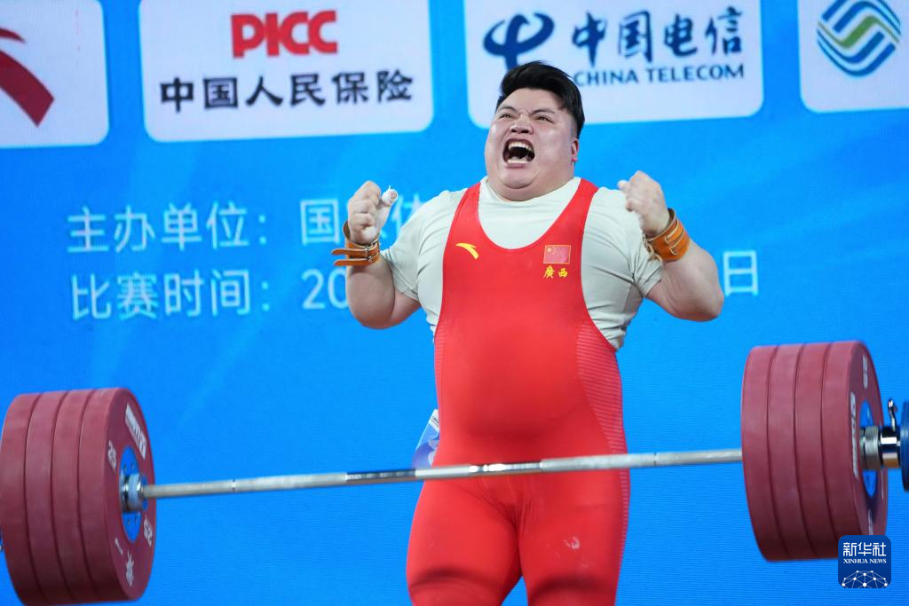 11月20日,廣西隊選手梁敏華在挺舉比賽中試舉成功后慶祝。最終,他獲得亞軍。