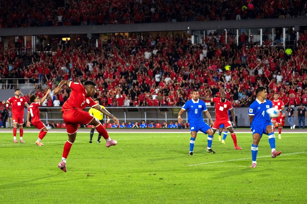 2018年第一次參加世界杯正賽后,巴拿馬隊近年來的世界排名節節攀升,賽前已升至第31位。本場比賽開場后,面對實力弱于自己的薩爾瓦多隊,巴拿馬隊牢牢占據優勢,發起一波波猛攻,在第17分鐘由塞薩爾·布萊克曼小角度補射首開記錄,球迷們歡呼雀躍、迫不及待再度燃起冷焰火。上半場補時階段,埃里克·戴維斯打進點球,為主隊擴大領先優勢。