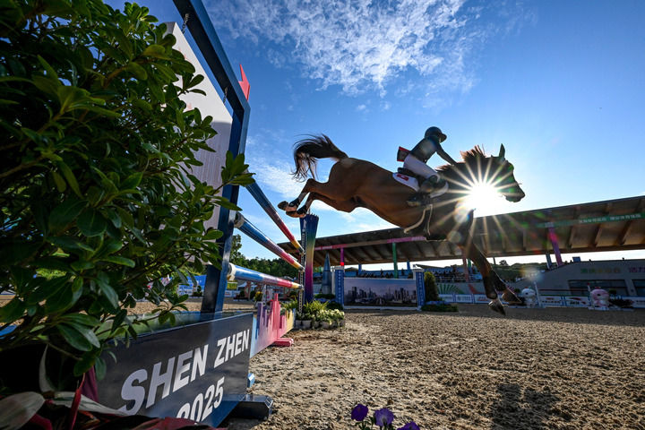 ↑11月17日,香港隊選手賴禎敏在馬術場地障礙團體賽比賽中。